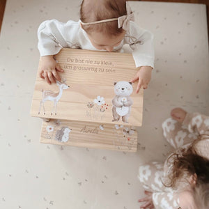 Besonders unsere personalisierbaren Geschenke mit Lasergravur sind ein Highlight. Ob du ein Nachtlicht mit Namen für das Kinderzimmer, eine Erinnerungsbox zur Geburt oder eine Spieluhr mit persönlicher Note suchst – bei uns findest du das perfekte Geschenk.