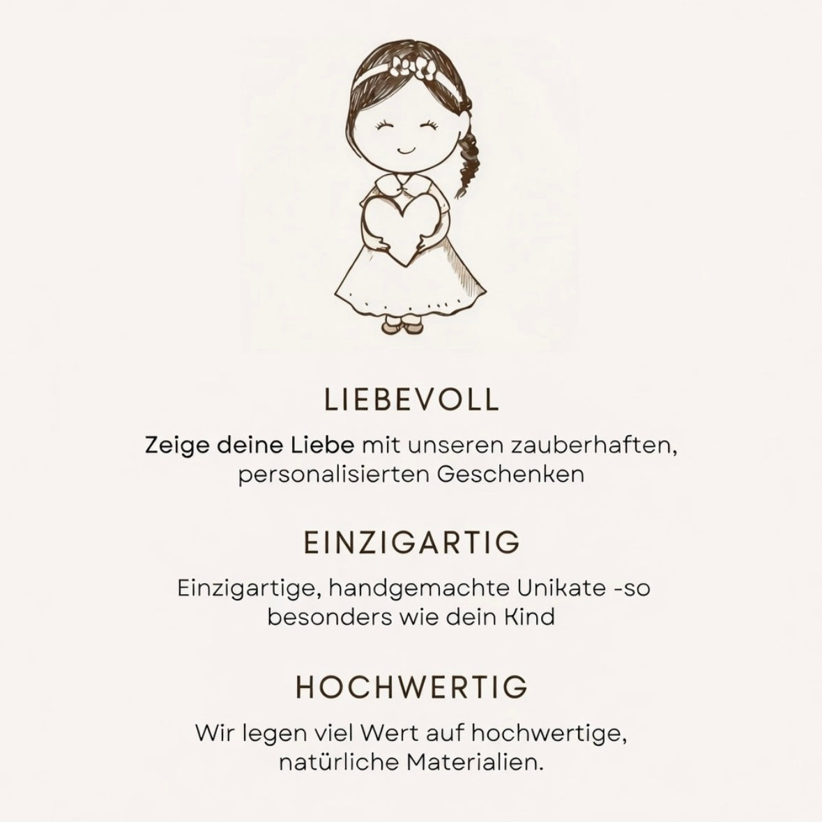 Unser Sortiment umfasst unter anderem personalisierbare Nachtlichter, Spieluhren, Krabbelschuhe, Kinderhocker und Holzspielzeug. Jedes Produkt wird mit viel Liebe zum Detail gestaltet, um sowohl optisch als auch funktional zu überzeugen.