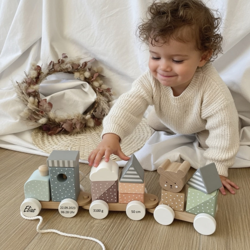Ein weiteres Highlight sind unsere Geburtszüge oder Geburts-Eisenbahnen, Holzzug die mit dem Geburtsdatum des Kindes personalisiert werden können. Diese einzigartigen Geschenke sorgen für viel Spaß und Freude bei jedem Geburtstag.