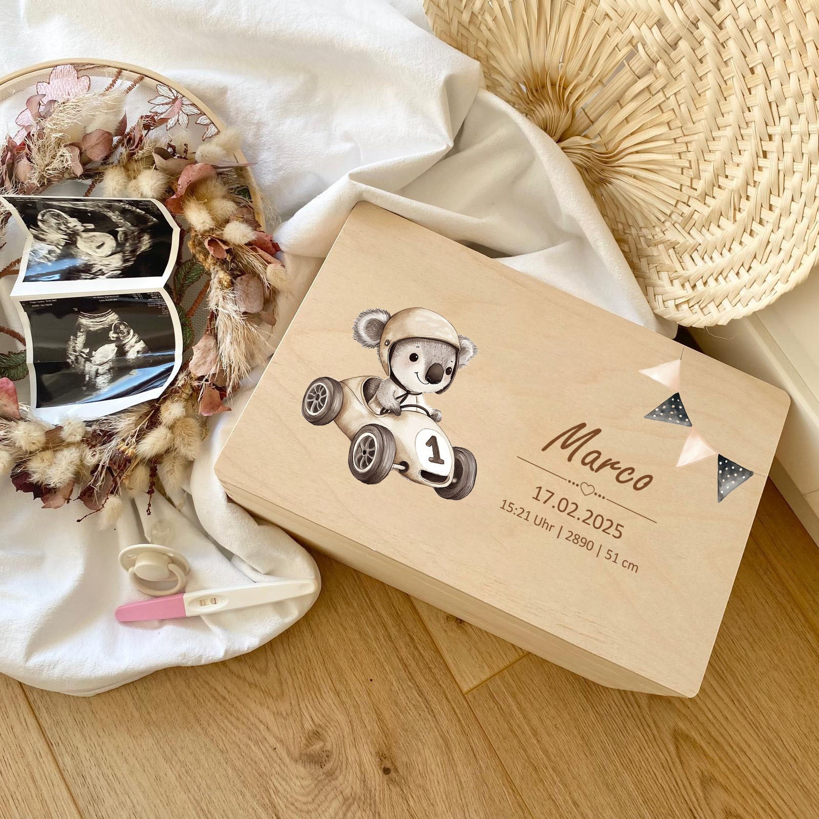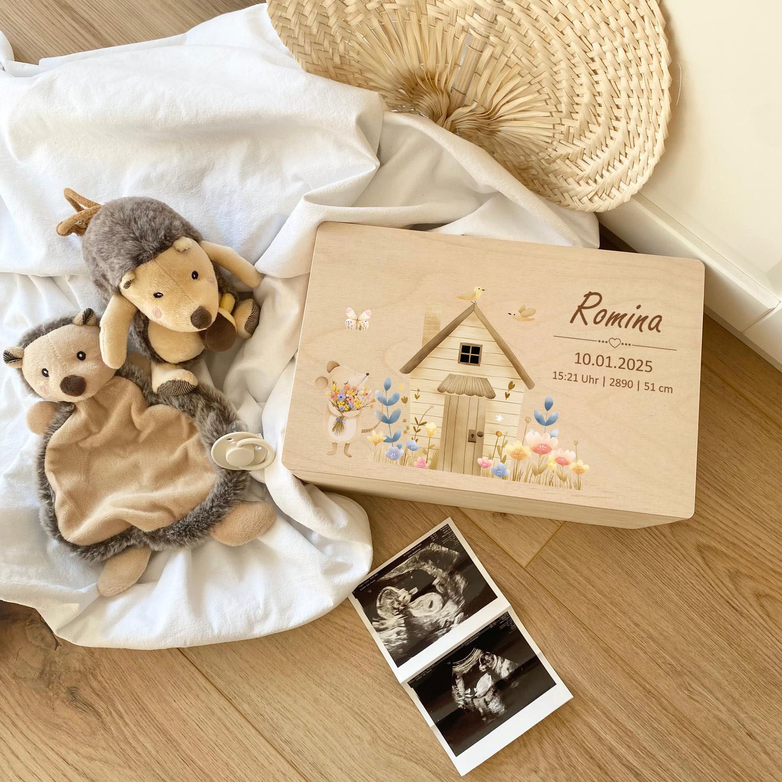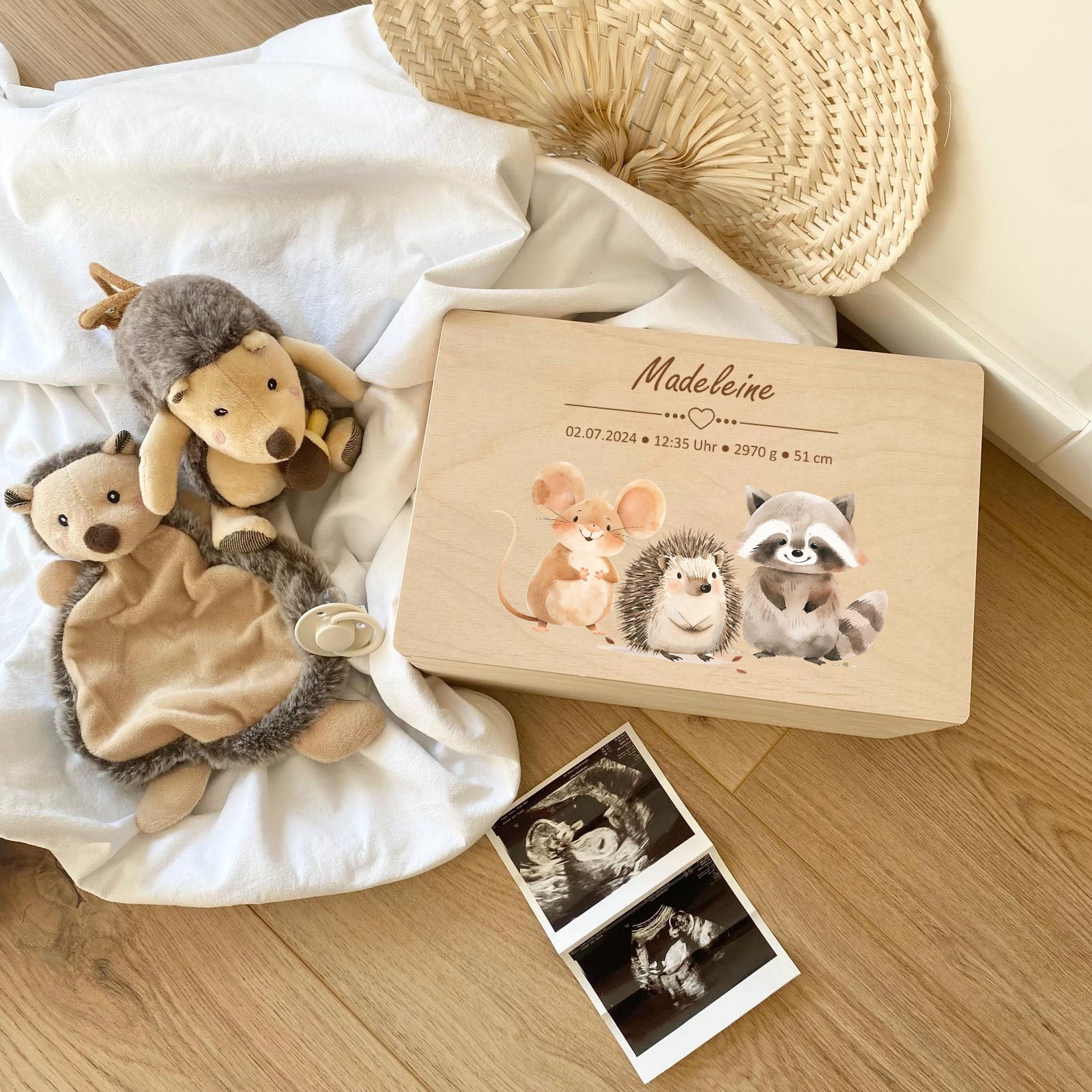 Unsere Produkte bestehen aus hochwertigen, nachhaltigen Materialien, darunter Holz für Erinnerungsboxen, weiche Stoffe für Plüschtiere und strapazierfähige Keramik für Kindergeschirr. Alle Materialien sind sorgfältig ausgewählt, um höchste Qualität und Langlebigkeit zu gewährleisten.