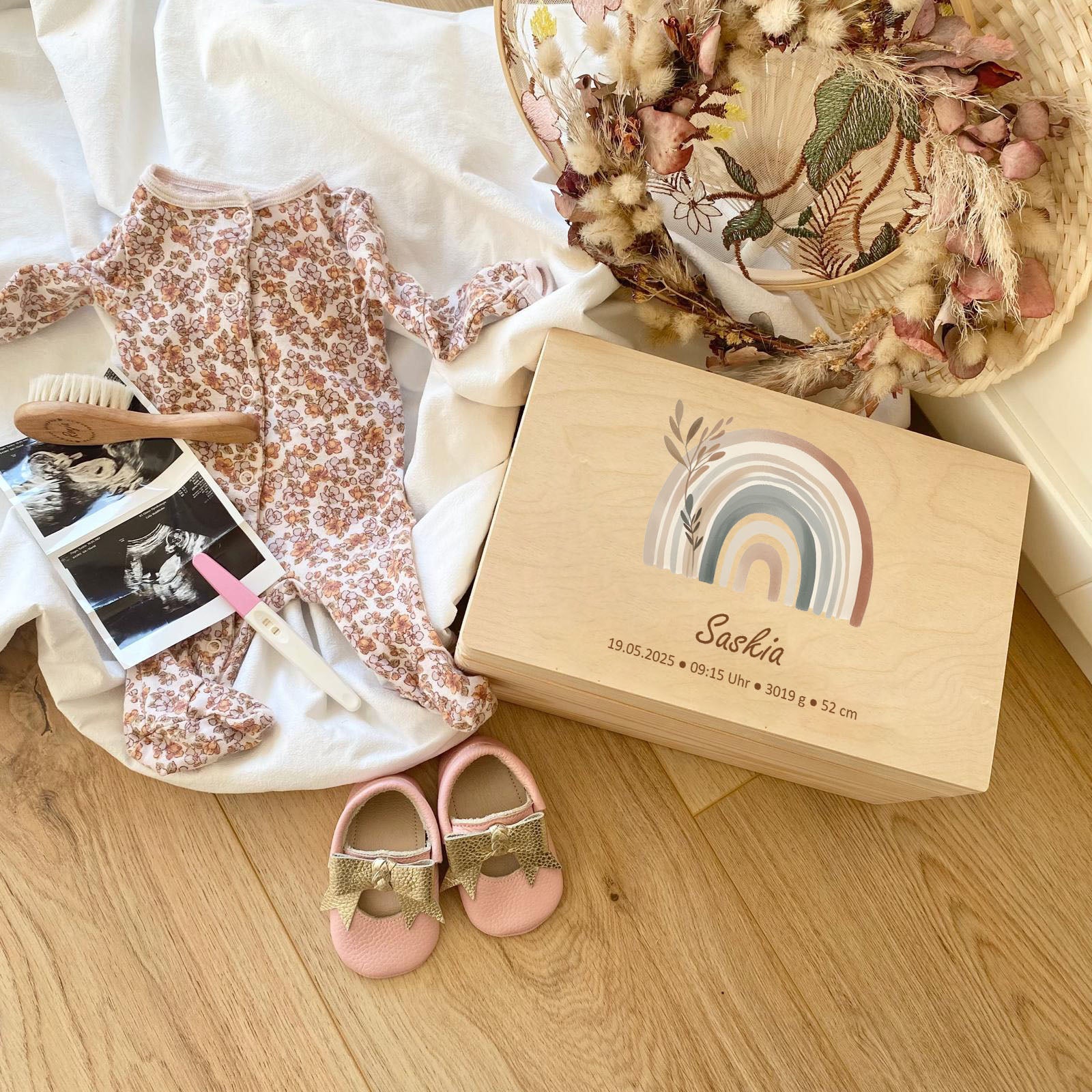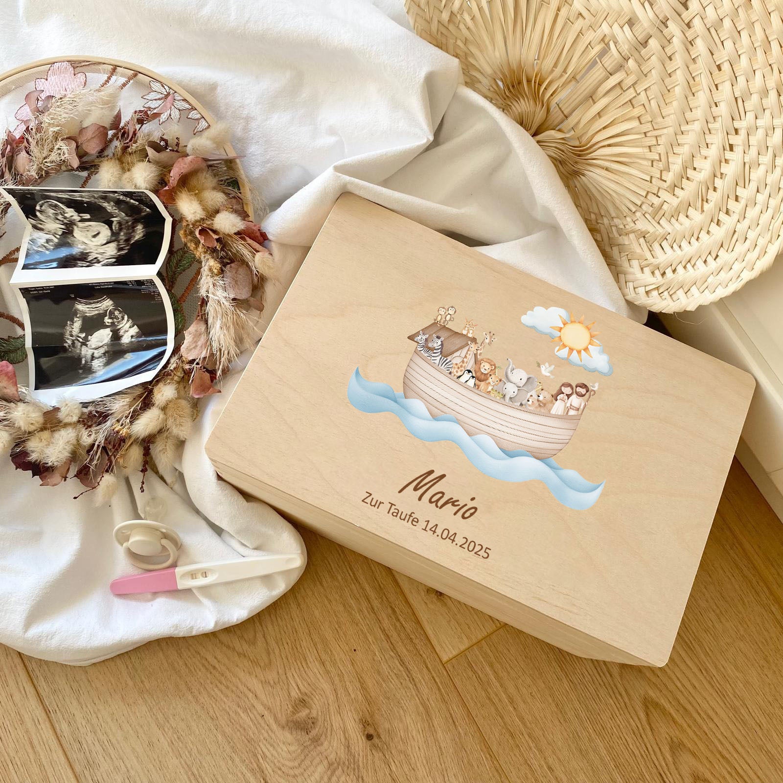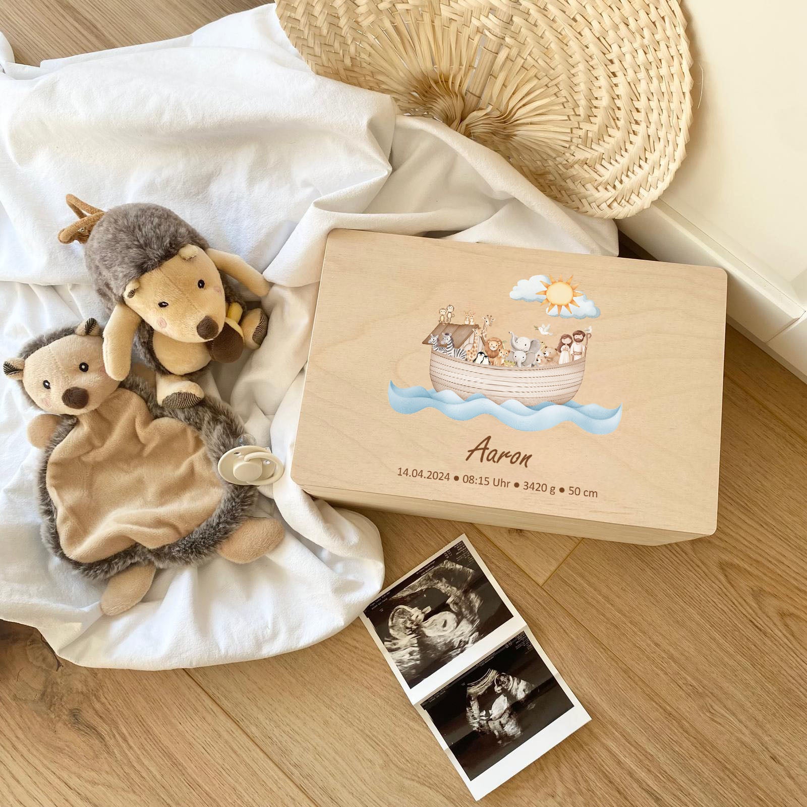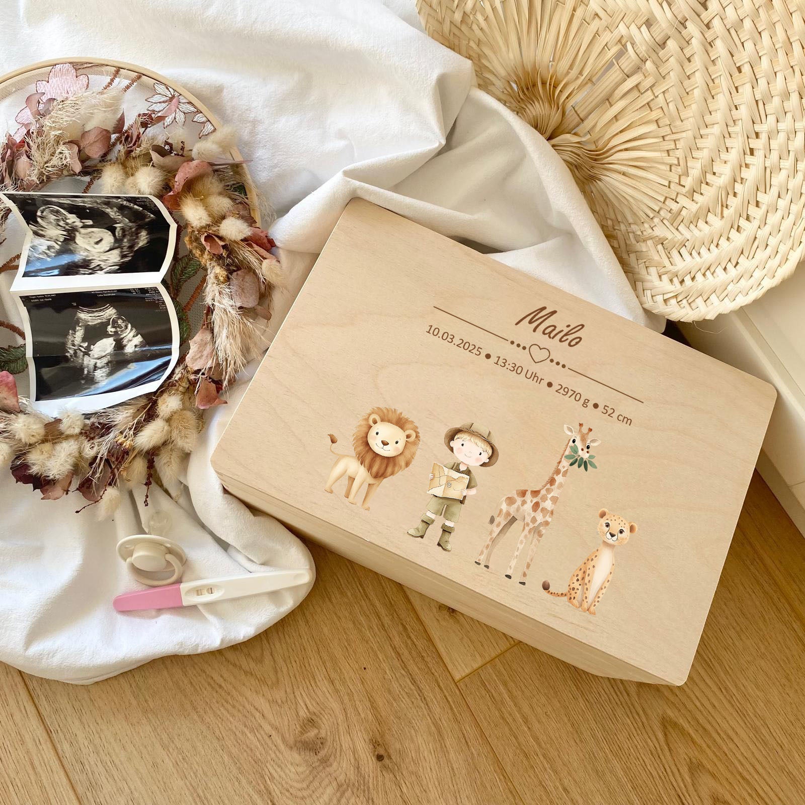 Unsere Produkte bestehen aus hochwertigen, nachhaltigen Materialien, darunter Holz für Erinnerungsboxen, weiche Stoffe für Plüschtiere und strapazierfähige Keramik für Kindergeschirr. Alle Materialien sind sorgfältig ausgewählt, um höchste Qualität und Langlebigkeit zu gewährleisten.