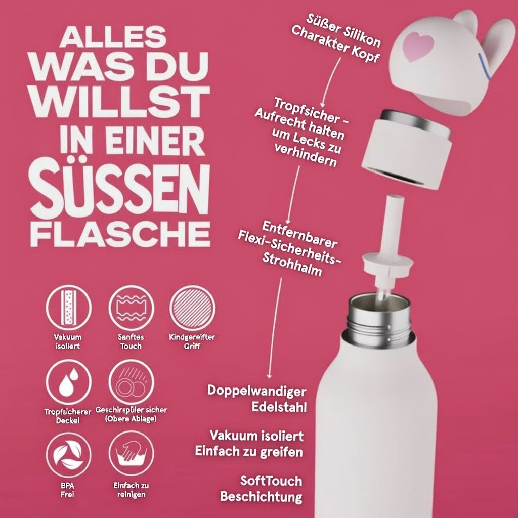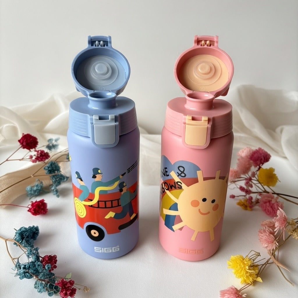 Die Flaschen verfügen über kinderfreundliche Verschlussmechanismen wie leichtgängige Drehverschlüsse oder praktische Klicksysteme, die von kleinen Händen problemlos bedient werden können.