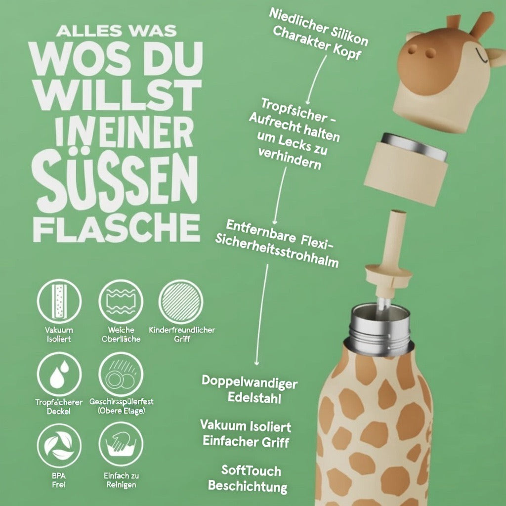 Entdecken Sie unsere einzigartigen personalisierbaren Kinder-Trinkflaschen, die mit liebevollen Motiven wie einem Löwen, einem Regenbogen oder einer Prinzessin gestaltet sind. Ideal für kleine Abenteurer, die stolz ihre individuelle Flasche mitnehmen möchten!