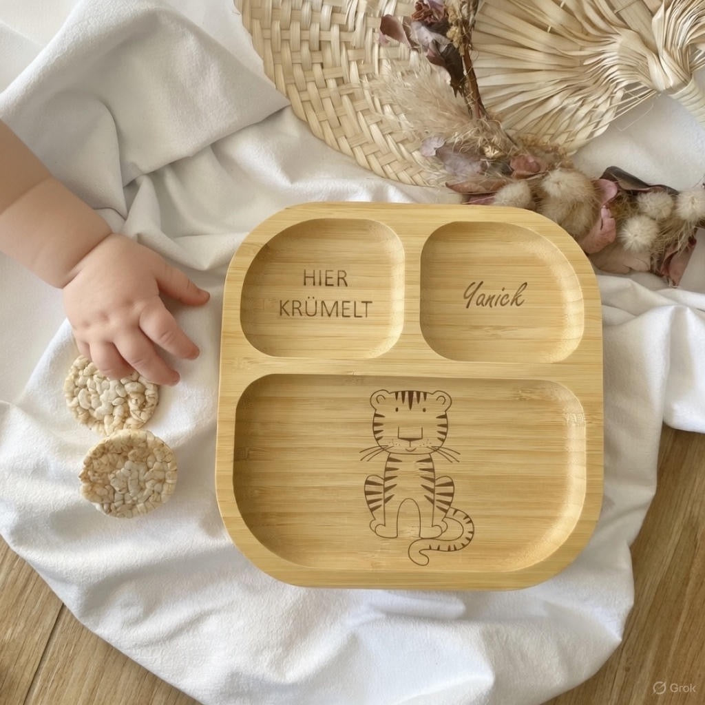 Ergänzt wird unser Sortiment durch personalisiertes Babygeschirr, das speziell für kleine Hände und erste Essversuche entwickelt wurde. Jedes Set enthält optionale Gravuren mit dem Namen deines Kindes oder einem niedlichen Motiv, sodass es einzigartig wird. Unser Kindergeschirr Set mit Namen ist auch eine tolle Geschenkidee zur Geburt, Taufe oder zum Geburtstag.