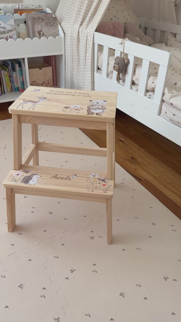 Willkommen in der zauberhaften Welt unseres personalisierten Tritthockers aus Holz! Dieser Hocker ist viel mehr als nur ein nützlicher Alltagshelfer – er ist ein einzigartiges Stück, das die kleinen Abenteuer deines Kindes perfekt begleitet. Mit dem Namen deines kleinen Schatzes und einem zauberhaften Motiv wird der Tritthocker zum idealen Begleiter in der Küche beim Kekse backen oder im Bad beim Zähne putzen. Ein wunderbares Geschenk für dein kleines Wunder!